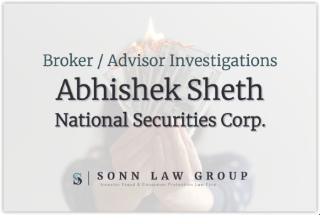 The Sonn Law Group is currently investigating allegations surrounding Abhishek Sheth. We represent investors in claims against negligent brokers and brokerage firms. If you or your loved one experienced investment losses, we are here to help. For a free consultation, please call us now at 866-827-3202 or complete our contact form.
