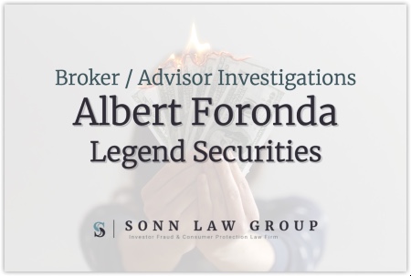 The Sonn Law Group is currently investigating allegations that Albert Foronda made unauthorized transactions We represent investors in claims against negligent brokers and brokerage firms. If you or your loved one experienced investment losses, we are here to help. For a free consultation, please call us now at 866-827-3202 or complete our contact form.
