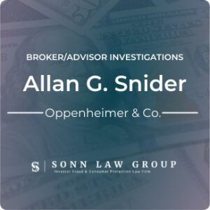 Allan G. Snider (CRD#:429580) was registered as a broker with Oppenheimer & Co. from 2011 until 2020. Previously, Snider was registered as a broker with UBS Financial from 2004 until 2011.