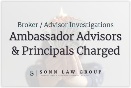 The Sonn Law Group is currently investigating allegations that Ambassador Advisors and its principals committed breaches of their fiduciary duties. We represent investors in claims against negligent brokers and brokerage firms. If you or your loved one experienced investment losses, we are here to help. For a free consultation, please call us now at 866-827-3202 or complete our contact form.
