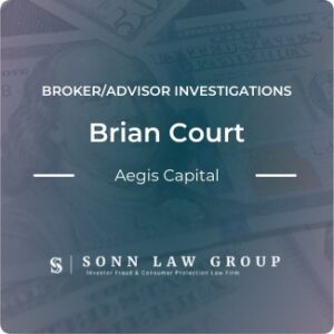 INVESTORS: Aegis Capital broker Brian Kenneth Court was named in a customer dispute alleging unsuitability, churning, breach of fiduciary duty, and negligence.