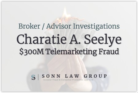 The Sonn Law Group is investigating allegations that Charatie Seelye committed fraud. If you or a family member has suffered losses investing, we want to discuss your case. Please contact us today for a free review of your case.
