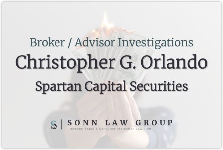 The Sonn Law Group is currently investigating allegations surrounding Christopher George Orlando. We represent investors in claims against negligent brokers and brokerage firms. If you or your loved one experienced investment losses, we are here to help. For a free consultation, please call us now at 866-827-3202 or complete our contact form.
