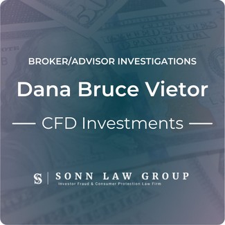 The Sonn Law Group is currently investigating allegations surrounding Dana Bruce Vietor. We represent investors in claims against negligent brokers and brokerage firms. If you or your loved one experienced investment losses, we are here to help. For a free consultation, please call us now at 866-827-3202 or complete our contact form.