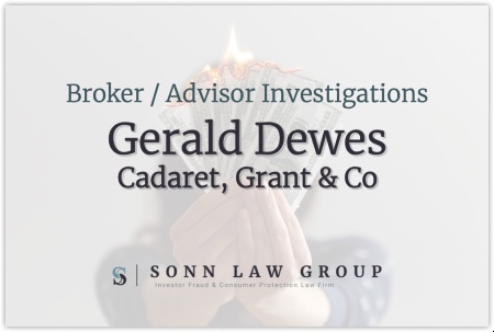 The Sonn Law Group is investigating allegations that Gerald Dewes engaged in undisclosed private securities transactions and outside business activities. If you or a family member has suffered losses investing, we want to discuss your case. Please contact us today for a free review of your case.