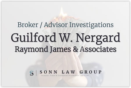 The Sonn Law Group is currently investigating allegations surrounding Guilford Ward Nergard. We represent investors in claims against negligent brokers and brokerage firms. If you or your loved one experienced investment losses, we are here to help. For a free consultation, please call us now at 866-827-3202 or complete our contact form.