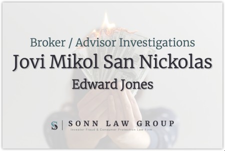 The Sonn Law Group is currently investigating allegations surrounding Javelin Mikol San Nicolas. We represent investors in claims against negligent brokers and brokerage firms. If you or your loved one experienced investment losses, we are here to help. For a free consultation, please call us now at 866-827-3202 or complete our contact form.