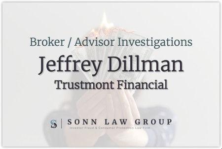 The Sonn Law Group is currently investigating allegations that Jeffrey Dillman committed misconduct. We represent investors in claims against negligent brokers and brokerage firms. If you or your loved one experienced investment losses, we are here to help. For a free consultation, please call us now at 866-827-3202 or complete our contact form.