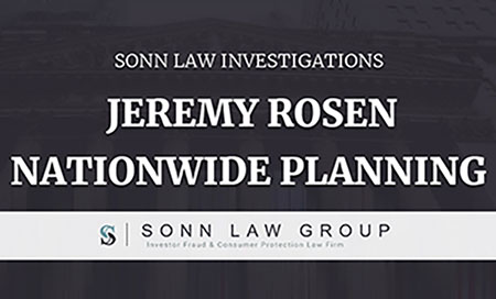 The Sonn Law Group is investigating allegations that Jeremy Rosen committed misconduct. If you or a family member has suffered losses investing, we want to discuss your case. Please contact us today, or call us at 866–827–3202 for a free consultation.