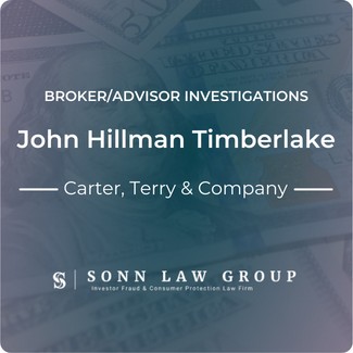 John Hillman Timberlake (CRD#: 2109445) was registered as a broker with Carter, Terry & Company from 2016 until 2020. Previously, Timberlake was registered as a broker with SunTrust Investment Services from 2013 until 2016.