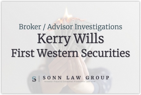 The Sonn Law Group is currently investigating allegations that Kerry Wills borrowed funds from clients. We represent investors in claims against negligent brokers and brokerage firms. If you or your loved one experienced investment losses, we are here to help. For a free consultation, please call us now at 866-827-3202 or complete our contact form.