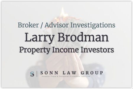 The Sonn Law Group is currently investigating allegations surrounding Property Income Investors, Larry Brodman, and Anthony Nicolosi. We represent investors in claims against negligent brokers and brokerage firms. If you or your loved one experienced investment losses, we are here to help. For a free consultation, please call us now at 866-827-3202 or complete our contact form.