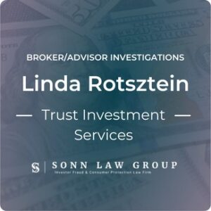 If you have any information about Linda Rotsztein that you would like to share or discuss, please call our firm for a confidential consultation. We represent investors in claims against negligent brokers and brokerage firms. If you or your loved one experienced investment losses, we are here to help. For a free consultation, please call us now at 866-827-3202 or complete our contact form.