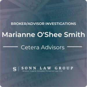 If you have any information about Marianne O’Shee Smith that you would like to share or discuss, please call our firm for a confidential consultation. We represent investors in claims against negligent brokers and brokerage firms. If you or your loved one experienced investment losses, we are here to help. For a free consultation, please call us now at 866-827-3202 or complete our contact form.