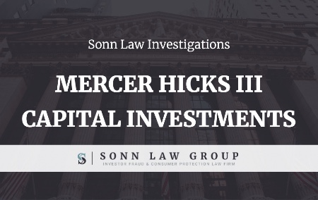 The Sonn Law Group is investigating allegations that Mercer Hicks III recommended unsuitable investments. If you or a family member has suffered losses investing, we want to discuss your case. Please contact us today for a free review of your case.