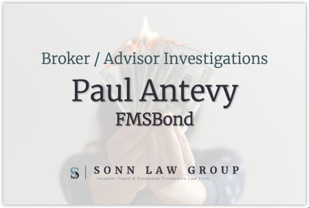 The Sonn Law Group is currently investigating allegations that Paul Antevy sold junk bonds. We represent investors in claims against negligent brokers and brokerage firms. If you or your loved one experienced investment losses, we are here to help. For a free consultation, please call us now at 866-827-3202 or complete our contact form.
