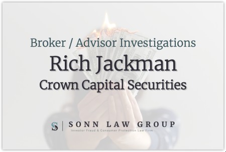 The Sonn Law Group is currently investigating allegations that Rich Jackman recommended unsuitable investments. We represent investors in claims against negligent brokers and brokerage firms. If you or your loved one experienced investment losses, we are here to help. For a free consultation, please call us now at 866-827-3202 or complete our contact form.