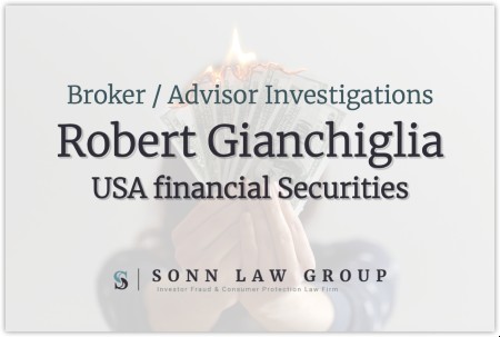 The Sonn Law Group is currently investigating allegations that Robert Gianchiglia misrepresented private placements. We represent investors in claims against negligent brokers and brokerage firms. If you or your loved one experienced investment losses, we are here to help. For a free consultation, please call us now at 866-827-3202 or complete our contact form.