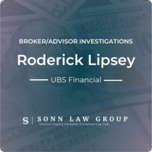The Sonn Law Group is currently investigating allegations surrounding Roderick K Von Lipsey. We represent investors in claims against negligent brokers and brokerage firms. If you or your loved one experienced investment losses, we are here to help. For a free consultation, please call us now at 866-827-3202 or complete our contact form.