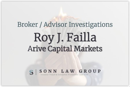 The Sonn Law Group is currently investigating allegations surrounding Roy Joseph Failla. We represent investors in claims against negligent brokers and brokerage firms. If you or your loved one experienced investment losses, we are here to help. For a free consultation, please call us now at 866-827-3202 or complete our contact form.