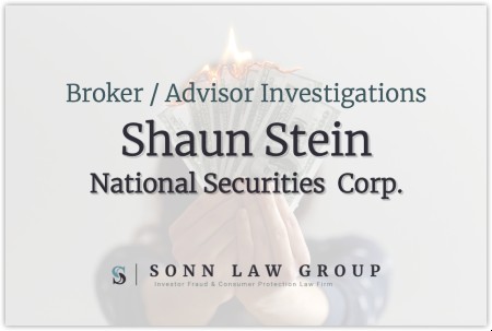 The Sonn Law Group is currently investigating allegations that Shaun Stein recommended unsuitable investments. We represent investors in claims against negligent brokers and brokerage firms. If you or your loved one experienced investment losses, we are here to help. For a free consultation, please call us now at 866-827-3202 or complete our contact form.