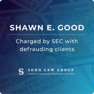 Sonn Law Group is a nationally-recognized leader in securities law. We dedicate our practice exclusively to helping defrauded investors recover compensation. If you or a loved one has suffered losses investing with Shawn E. Good we invite you to contact our firm for a free, no-obligation consultation to discus your options.