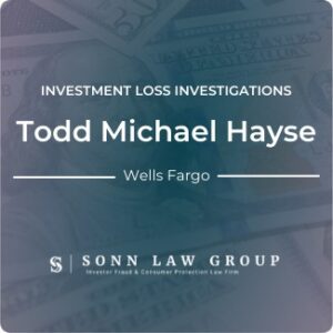 The Sonn Law Group is currently investigating allegations surrounding Todd Michael Hayse. We represent investors in claims against negligent brokers and brokerage firms. If you or your loved one experienced investment losses, we are here to help. For a free consultation, please call us now at 866-827-3202 or complete our contact form.