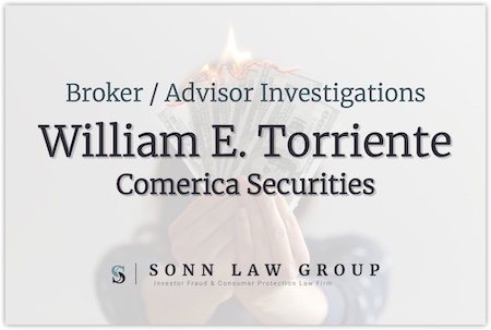 The Sonn Law Group is currently investigating allegations surrounding William Edward Torriente Jr.. We represent investors in claims against negligent brokers and brokerage firms. If you or your loved one experienced investment losses, we are here to help. For a free consultation, please call us now at 866-827-3202 or complete our contact form.