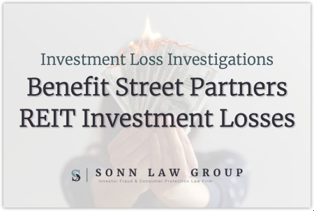 Sonn Law Group is representing investors who have suffered losses investing in Benefit Street Partners REIT. REITs have seen a significant decline during coronavirus pandemic. If you or a family member has suffered losses investing, we want to discuss your case. Please contact us today for a free review of your case.