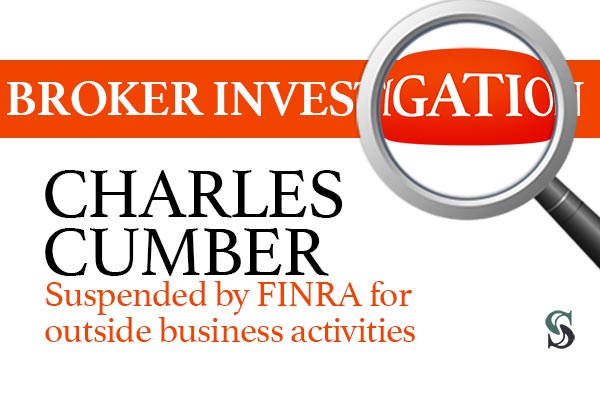 Mr. Cumber was fired by Wells Fargo in February after failing to timely disclose outside activities and financial disclosures. Then in late September, Charles Cumber was suspended by FINRA for four months, in addition to being fined $7,500, for engaging in outside business activities without properly reporting said activity, a violation of FINRA Rule 3270.