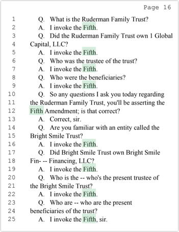BREAKING: Carl Ruderman of 1st Global Capital Invoked 5th Amendment Right Against Self Incrimination During an August 30th Deposition.