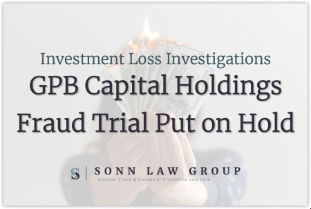 The Sonn Law Group is currently investigating allegations that brokers recommended investments in GPB Capital Holdings. We represent investors in claims against negligent brokers and brokerage firms. If you or your loved one experienced investment losses, we are here to help. For a free consultation, please call us now at 866-827-3202 or complete our contact form.