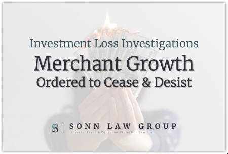 The Sonn Law Group is currently investigating allegations that Merchant Growth & Income Funding LLC sold unregistered promissory notes. We represent investors in claims against negligent brokers and brokerage firms. If you or your loved one experienced investment losses, we are here to help. For a free consultation, please call us now at 866-827-3202 or complete our contact form.