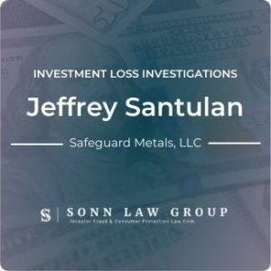 The Sonn Law Group is currently investigating allegations surrounding Safeguard Metals, LLC and Jeffrey Santulan. We represent investors in claims against negligent brokers and brokerage firms. If you or your loved one experienced investment losses, we are here to help. For a free consultation, please call us now at 866-827-3202 or complete our contact form.