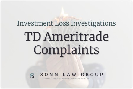 At the Sonn Law Group, our experienced securities fraud lawyers are currently investigating any and all investor complaints against TD Ameritrade. Here, we detail some of the most notable recent allegations of fraud and negligence by TD Ameritrade and its securities representatives.